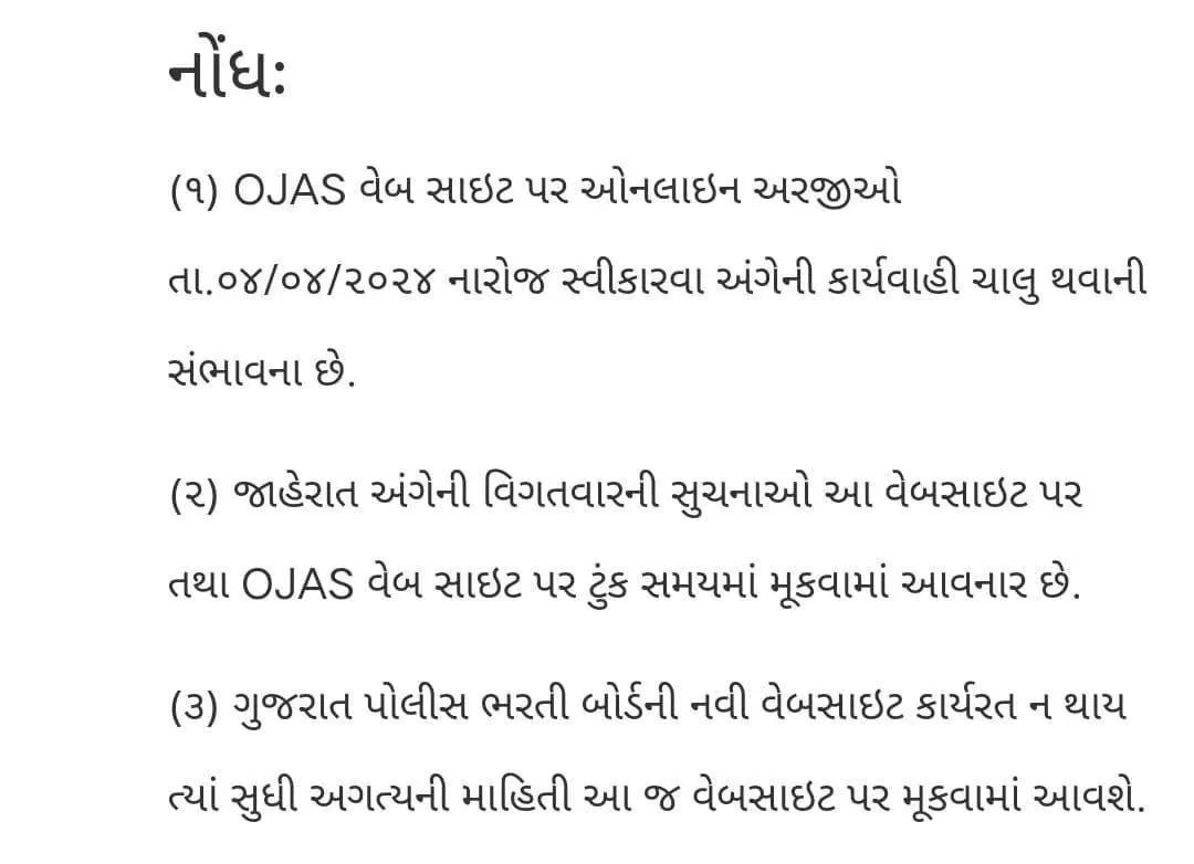 Gujarat Police Recruitment 2024: ગુજરાત પોલીસ ભરતીની તૈયારી કરતાં ઉમેદવાર માટે મહત્વના સમાચાર સામે આવી રહ્યા છે. પીએસઆઇ તથા લોકરક્ષક ભરતીની પરીક્ષા ઓફલાઈન લેવાશે.ગુજરાત પોલીસ દળમાં પો.સ.ઇ. કેડરની બિન હથિયારી પોલીસ સબ ઇન્સ્પેકટર તથા લોકરક્ષક કેડરની બિન હથિયારી પોલીસ કોન્સ્ટેબલ, હથિયારી પોલીસ કોન્સ્ટેબલ, હથિયારી પોલીસ કોન્સ્ટેબલ (એસ.આર.પી.એફ.) અને જેલ સિપોઇ વર્ગ-૩ સંવર્ગની કુલ 12472 ખાલી જગ્યાઓની સીધી ભરતીથી ભરવા માટે પોલીસ ભરતી બોર્ડ દ્વારા ઓનલાઇન અરજીઓ તા.04/04/2024 (બપોરના 15:૦૦ કલાક)થી તા.30/04/2024 (રાત્રિના 23:59 કલાક સુધી) કાળજીપૂર્વક ઓનલાઈન અરજી કરવાની રહેશે.